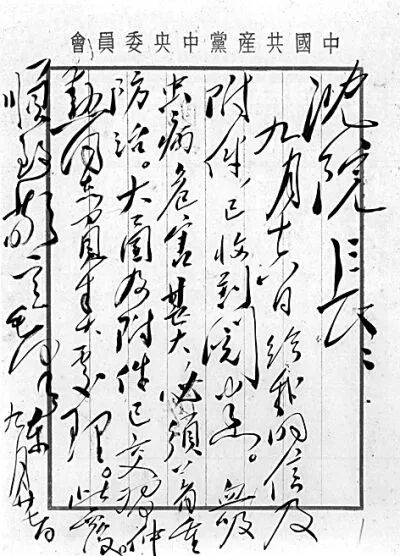 毛泽东就防治血吸虫病致沈钧儒的信(1953年9月27日)。资料图片